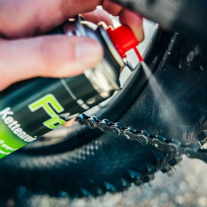 Der F100 Kettenreiniger kombiniert eine optimale Kriechfähigkeit beim Aufsprühen mit einer perfekten Haftung während des Einwirkens („Thixotropie“)