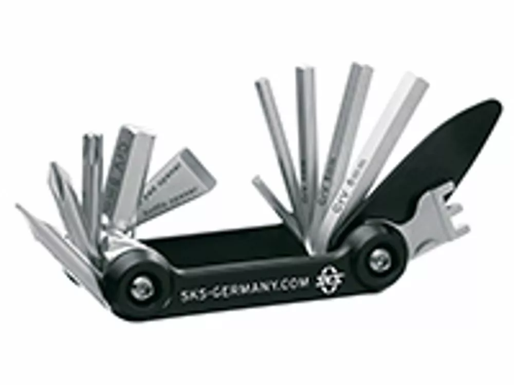 Mit den 14 integrierten Funktionen wie Inbusschlüssel, Schraubendreher, Torx-Schlüssel, Reifenheber, Speichenschlüssel und Kapselheber/Bremsbelagöffner lassen sich viele Pannen am Fahrrad schnell beheben.