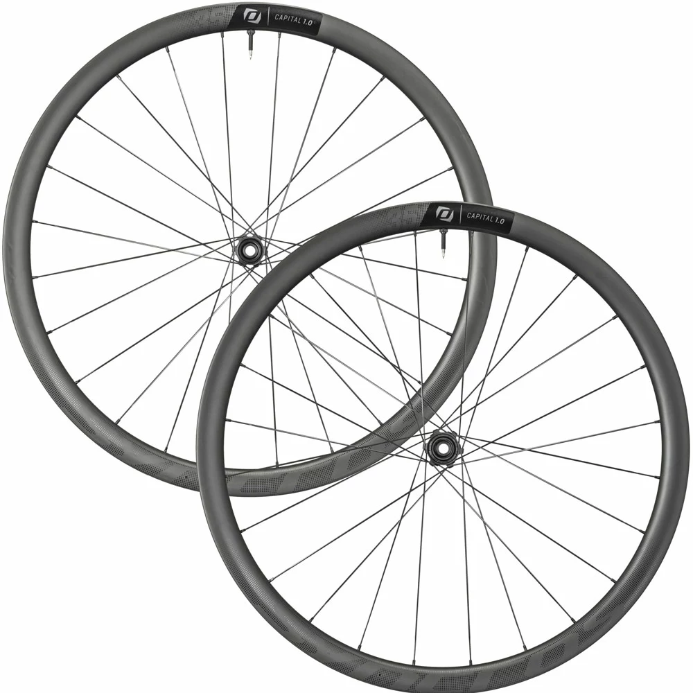 Der leichte Laufradsatz für Anstiege: Capital 1.0 35 verfügt über UD Carbonfaser-Felgen mit 35 mm Tiefe. Das Felgenprofil hat moderne 21 mm Innendurchmesser und ist tubeless-ready. Beide Laufräder haben 24 Speichen und der Kassettenkörper wird mit einer Syncros 6-Ratschen-Nabe angetrieben. Tubeless-Ventile sind enthalten.